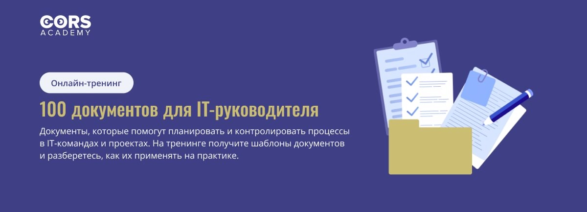 Для освоения лучших практик проектного управления в IT рекомендуется изучить тренинг-репозиторий CORS Academy "100 документов для IT-руководителя". Тренинг включает полный набор шаблонов документов для всех фаз жизненного цикла IT-проекта.